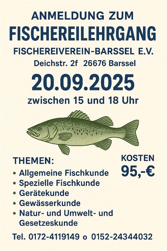 LehrgangAktualisiert (Mittwoch, den 20. August 2025 um 16:52 Uhr) Angeln im RegenAktualisiert (Freitag, den 07. Februar 2025 um 18:54 Uhr) |